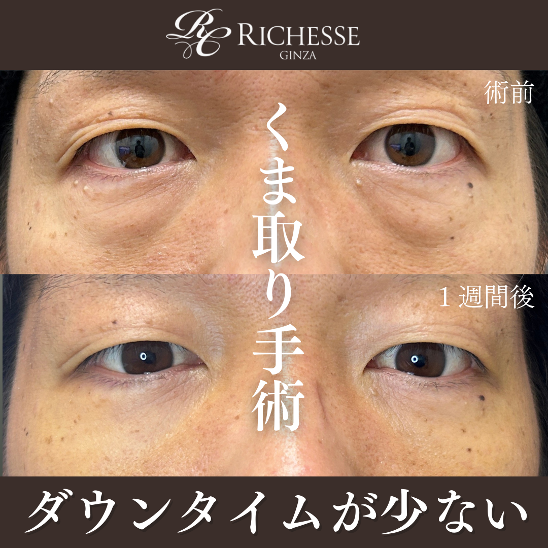 当院のくまとり手術は術後ダウンタイムが少ないのが特徴で、